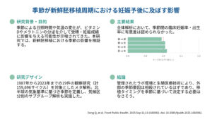季節が新鮮胚移植周期における妊娠予後に及ぼす影響 (Front. Public Health. 2025)