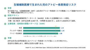 生殖補助医療で生まれた児のアトピー疾患発症リスク(JAMA Netw Open. 2025)