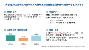 内因性LH上昇後hCG投与は凍結融解正倍数性胚盤胞移植の妊娠率を低下させる(J Assist Reprod Genet. 2018)