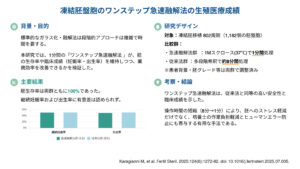 凍結胚盤胞のワンステップ急速融解法の生殖医療成績(Fertil Steril. 2025)