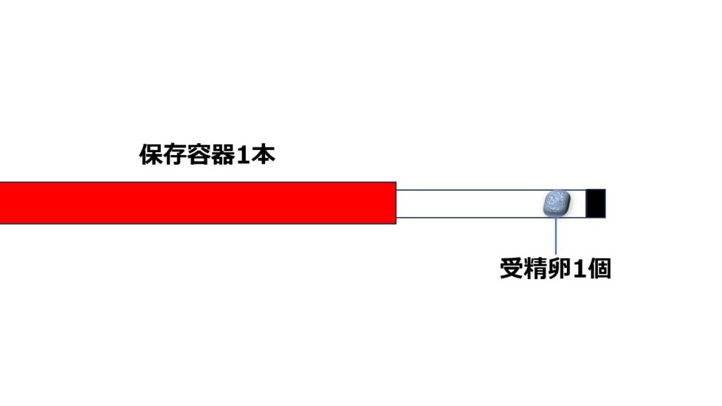 上記のルールに則って考えると、凍結タンク1台の中に収納できる受精胚の数は6(キャニスターの数)×19(ケーンの数)×5(保存容器の数)=570個、保管できる計算になりますが、現実は570個も保管していません。