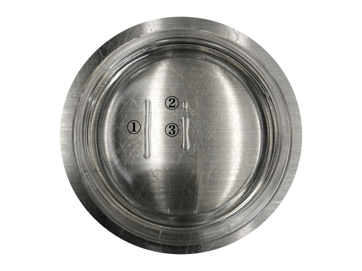 ③ 卵子をここに入れて、卵子への精子の注入はここで行います。