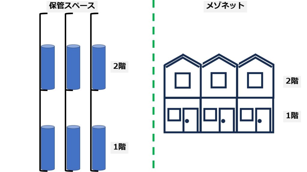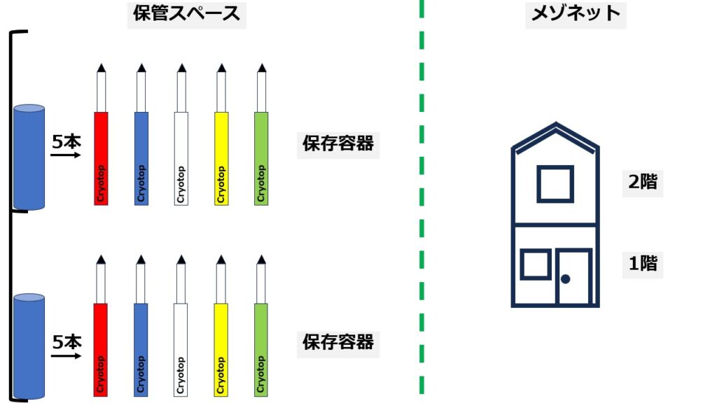 今回は「卵子」で凍結する際の保管スペースについて説明します。保管スペースを居住スペースに例えると、メゾネットになります。住戸ごとに内階段があり1階と2階に分かれているマンション、または、アパートになります。