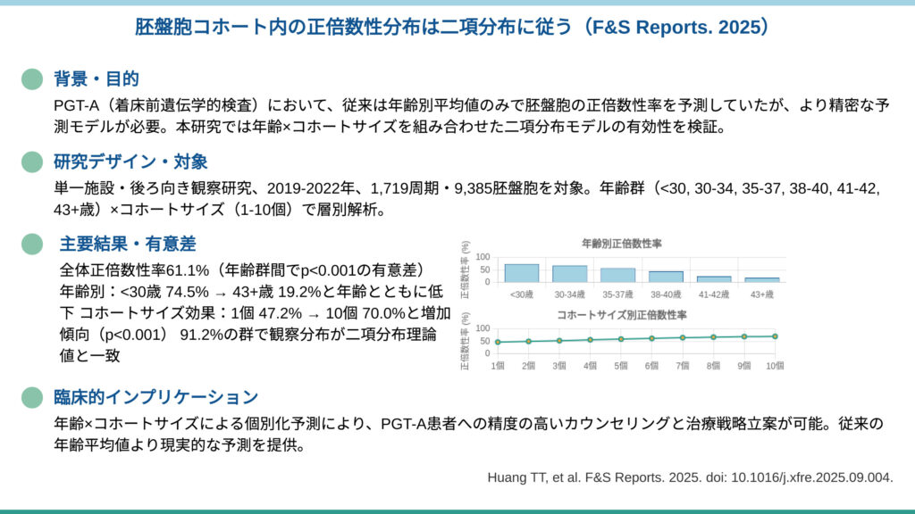 胚盤胞コホート内の正倍数性分布は二項分布に従う(F&S Reports. 2025)