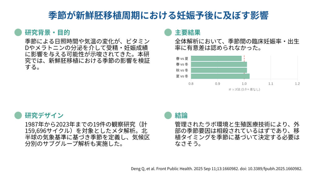 季節が新鮮胚移植周期における妊娠予後に及ぼす影響 (Front. Public Health. 2025)