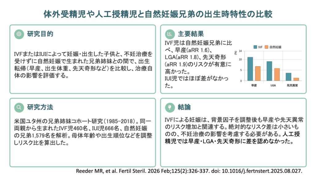 体外受精児や人工授精児と自然妊娠兄弟の出生時特性の比較(Fertil Steril. 2026)