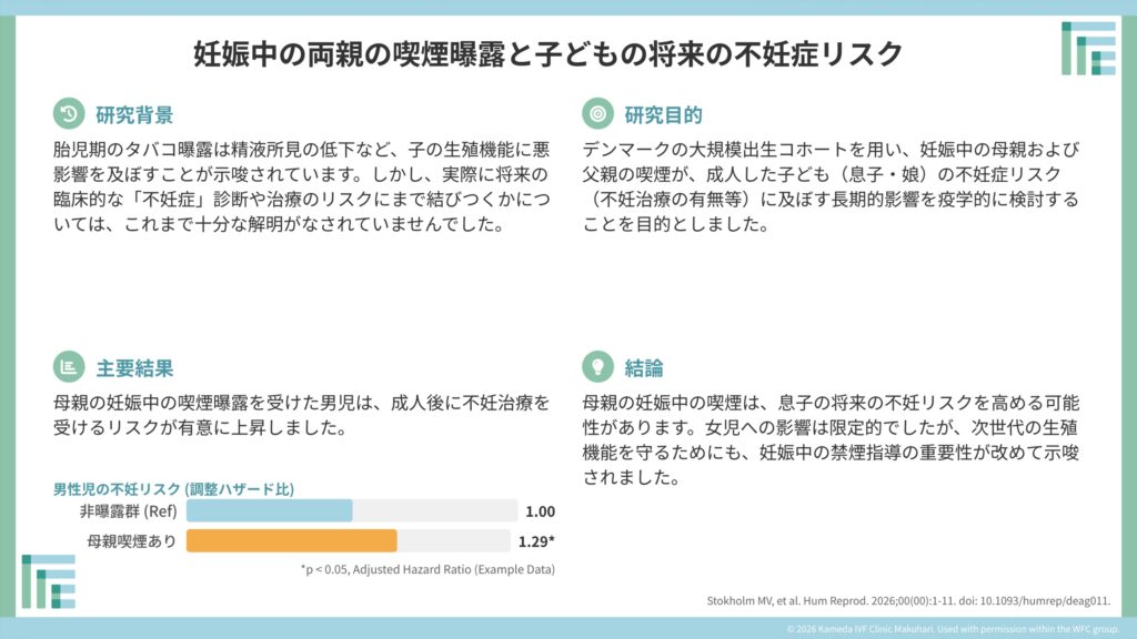 妊娠中の両親の喫煙曝露と子どもの将来の不妊症リスク(Hum Reprod. 2026)