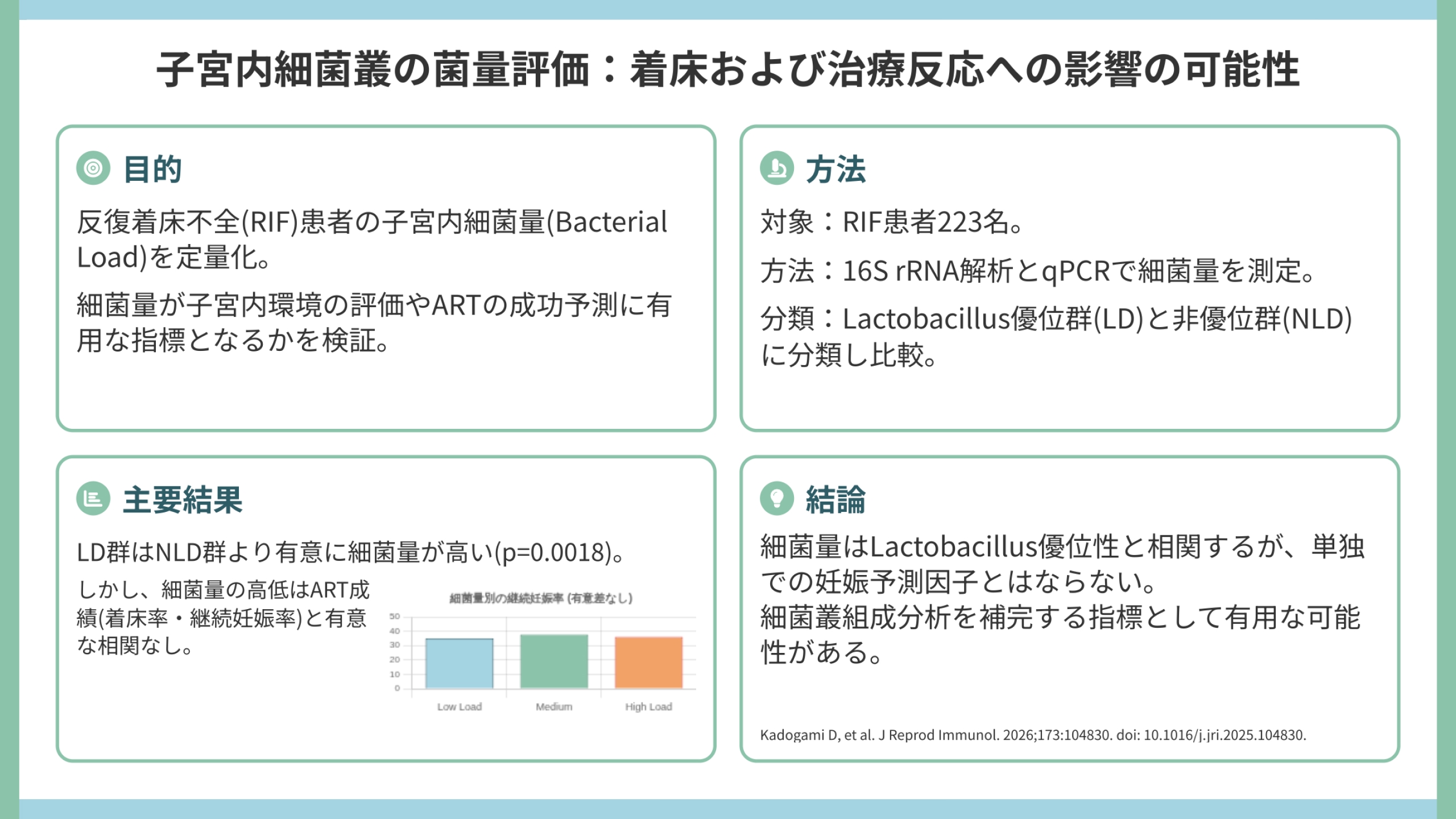 子宮内細菌叢の菌量評価:着床および治療反応への影響の可能性(J Reprod Immunol. 2026)