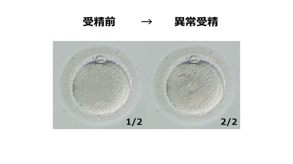 異常受精(2/2)では、卵子の中に袋が3個出現します。