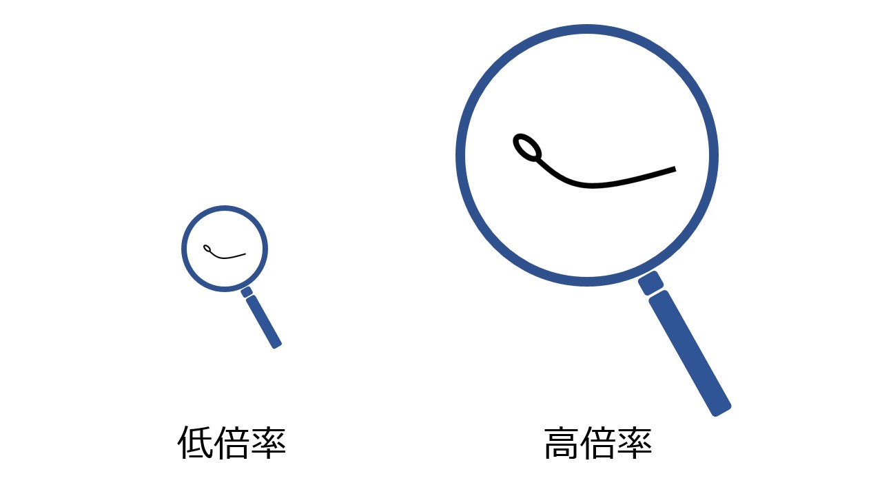 倍率に特に決まりはなく、それぞれのクリニックの顕微鏡で最高倍率にして精子を見ます。因みに当クリニックの顕微鏡の最高倍率は1200倍になりますので1200倍で精子を見ます。