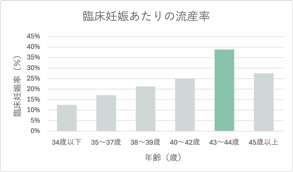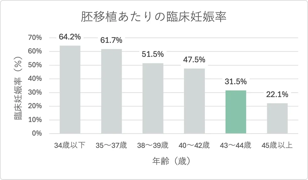 ※45歳以上については実際に妊娠に至った方の人数が少ないため、この数値はあくまで参考程度にお考えください。