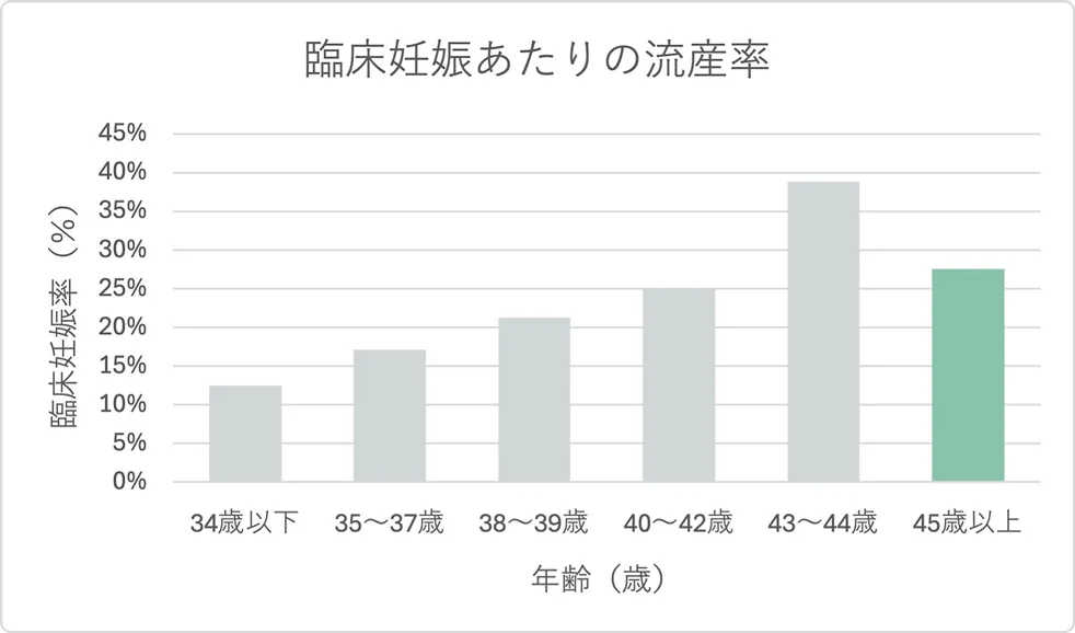 ※45歳以上については実際に妊娠に至った方の人数が少ないため、この数値はあくまで参考程度にお考えください。