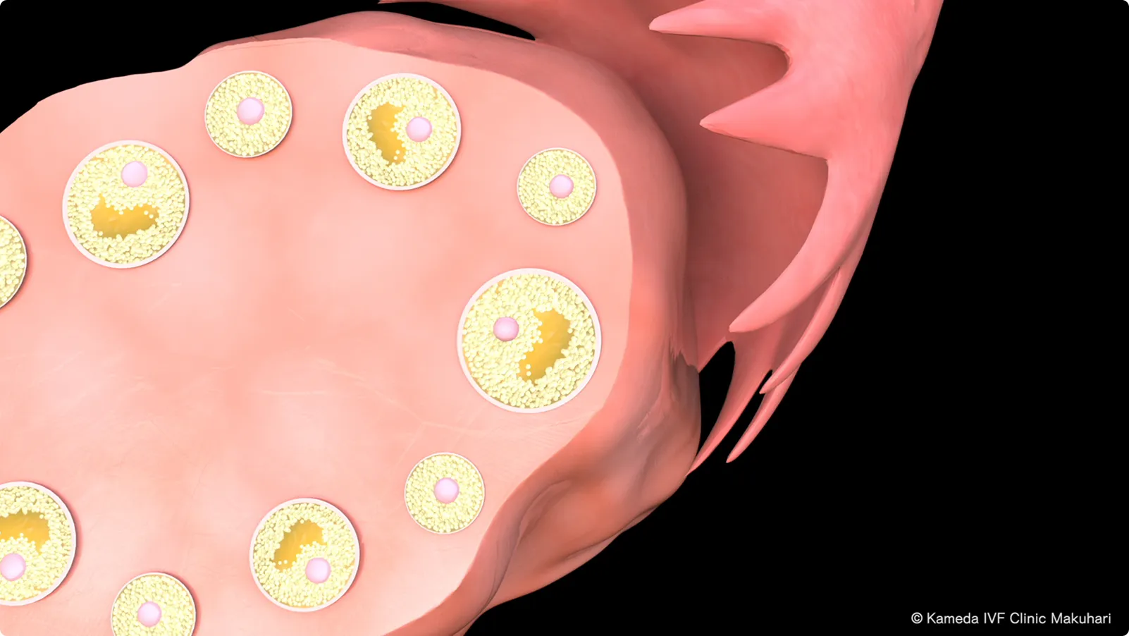 卵巣の中には、卵子の元となる「原始卵胞」が蓄えられています。これらは、母親のお腹の中にいるときに作られ、出生後に新たに作られることはありません。