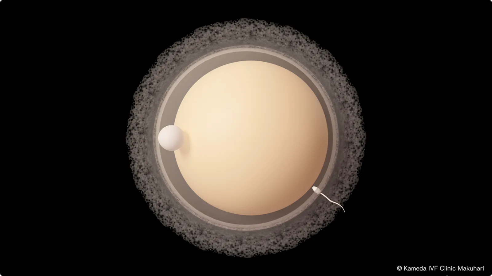 卵子にたどり着いた精子は透明帯(卵の殻)を通り抜けて、そのうち1個だけが卵子の中に侵入し、卵子と融合します。