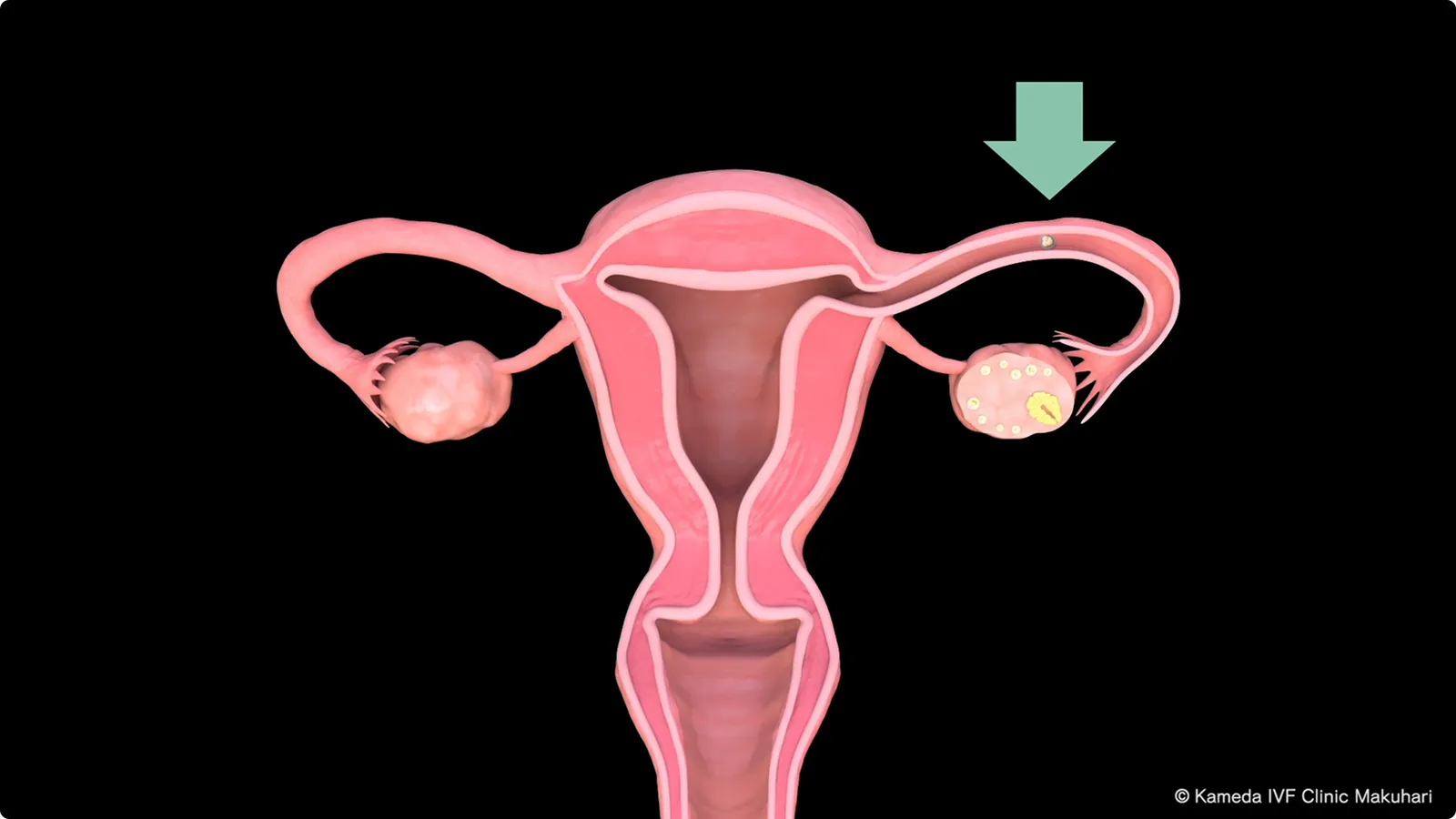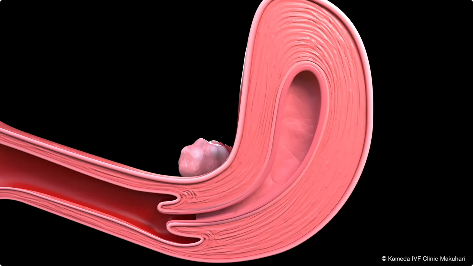 胚(受精卵)は発育しているうちに、少しずつ卵管を通って子宮の中に移動していきます。