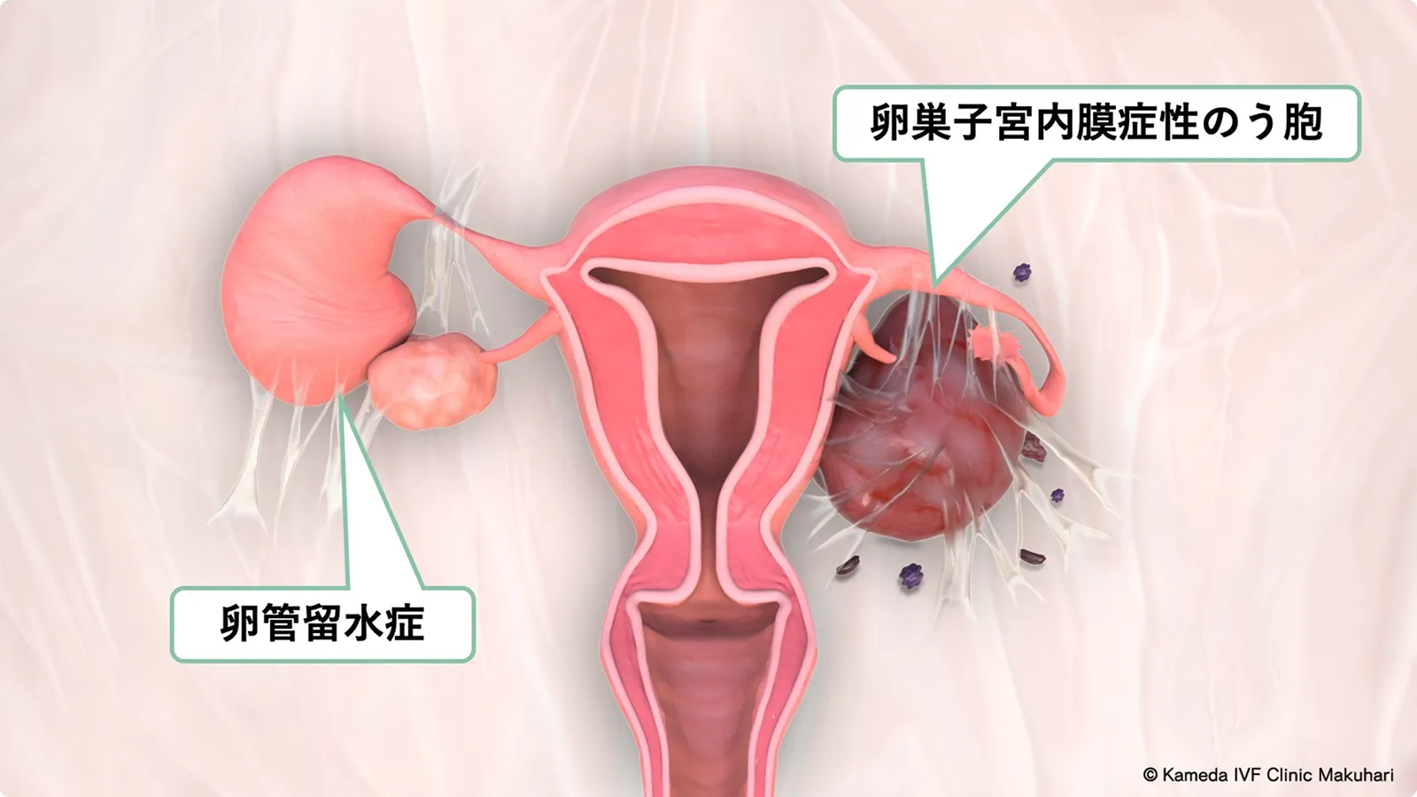 卵子と精子が初めて出会う場所が卵管です。卵管は受精に適した環境を提供するとともに、受精卵を子宮まで送り届ける役割があります。もしも卵管が両側とも閉塞している場合には、卵子と精子は出会うことができないため、自然妊娠はできません。