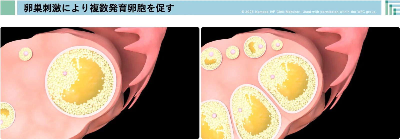 卵巣刺激は、体外受精において良好な卵子を複数個採取するために行う治療です。通常の自然周期では月に1個の卵子しか排卵されませんが、卵巣刺激により複数の卵胞を同時に発育させることで、治療の成功率を向上させます。