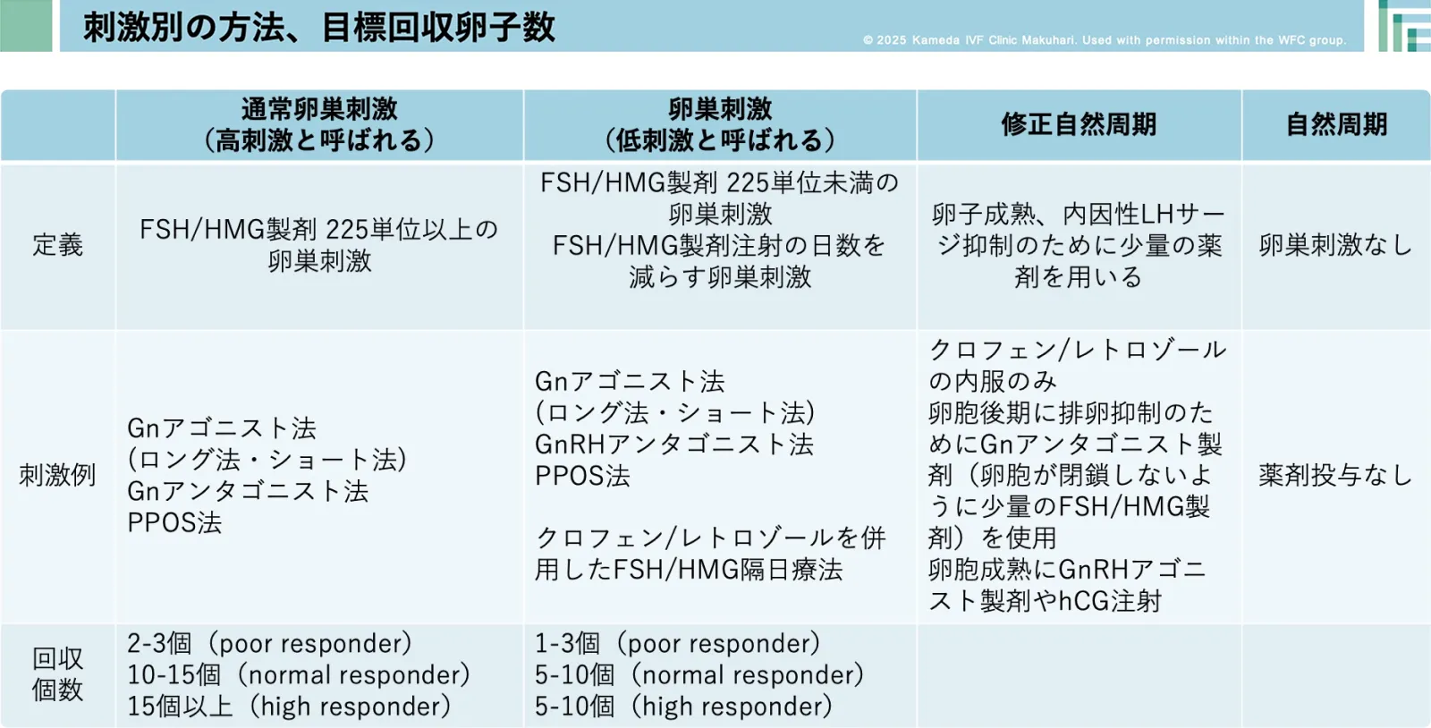- 卵巣の反応性に応じた適切な刺激法の選択
